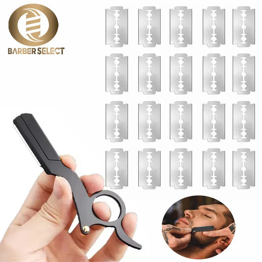 Manual Shaver for Men Barbershop Razor Stainless Steel Shank Is Easy To Use Safety Razor 1Pcs Shaving Razor with 10pcs Blades
